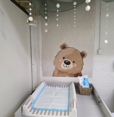 Der Wickelberreich ist ein sauberer, sicherer und liebevollen gestalteter Ort, an dem sich kleine Bären geborgen fühlen können. Mit viel Ruhe, Sorgfalt und Wärme sorge ich dafür, dass jede Pflegeeinheit ein Moment des Wohlfühlens und Vertrauens ist.